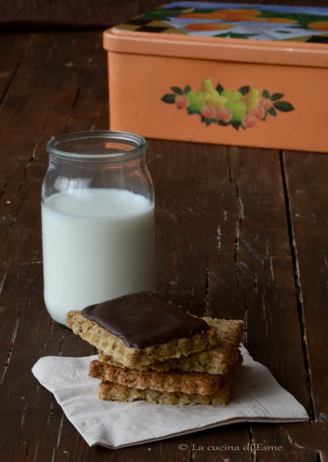 Il circo è di nuovo in piena attività. Giullari e saltimbanchi che non hanno mai lavorato un giorno nella loro vita ci vengono a parlare dall'alto della loro esperienza dei nostri quotidiani problemi. Chi da sempre si sposta usando un auto con l’autista, ci racconta di capire i problemi di chi è costretto ad utilizzare il trasporto pubblico tutti i giorni, chi ha due tate per un bambino ci racconta che comprende la difficoltà di non trovare posto all'asilo comunale. La maggior parte di loro colleziona reati per frode fiscale, corruzione, riciclaggio, truffa ai danni dello Stato e appropriazione indebita. Per non parlare di peculato, tentata concussione, voto di scambio … e questa gente ci chiede di dargli fiducia? Ancora? Per non parlare di questa ridicola rincorsa al seggio, questa smania della poltrona, ad ogni costo, disposti anche a perderci la faccia o la dignità. Cosa importa in fondo: quasi 15 mila euro al mese per spingere un bottone, vuoi mettere? Anche questa volta la politica avrebbe forse potuto cogliere l'occasione per mandare un messaggio diverso, invece ha deciso di fregarsene nuovamente, chiudendosi in una spirale di autoreferenzialità. D'altronde la politica è diventata, per la maggior parte di questi signori, solo un mestiere redditizio e pur di ottenere il nostro voto ci raccontano le favole più assurde, ci fanno le promesse più improbabili, e per districarci in questo dedalo di bugie abbiamo solo due armi: la nostra memoria e la nostra intelligenza. Io invece non vi racconto frottole se vi dico che questi biscotti al grano saraceno, nella loro ovvia rusticità, sono veramente ottimi. Li ho trovati perfetti sia da utilizzare per colazione o merenda, sia come biscottino da accompagno al caffè o dolcetto del dopo cena … insomma provateli, ovviamente la copertura al cioccolato … è un optional!